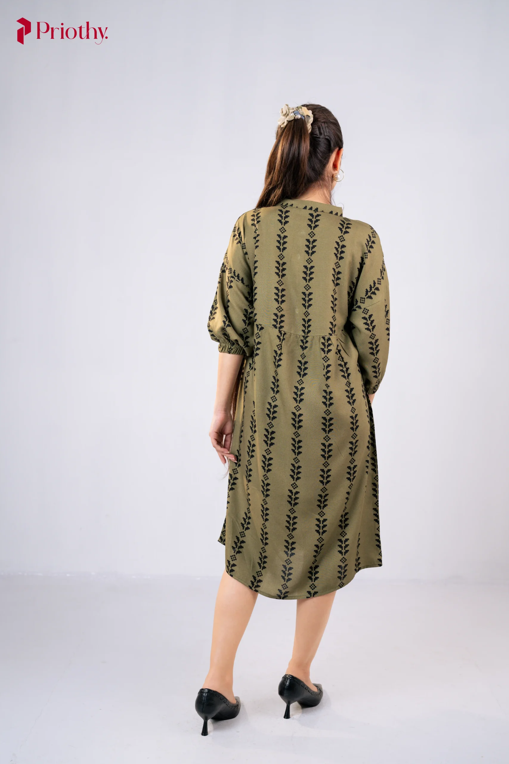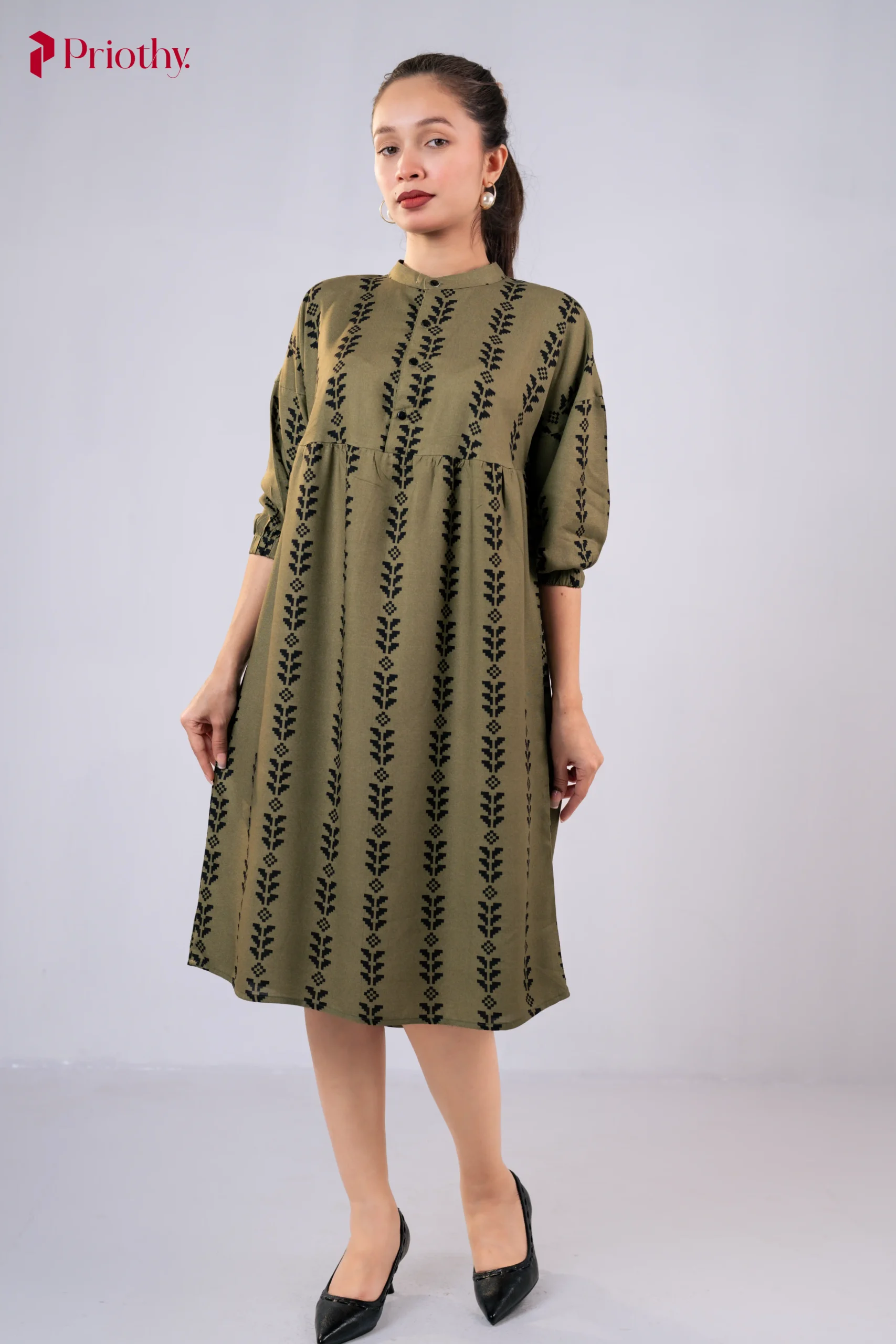 Product Name: Olive Printed A-Line Dress