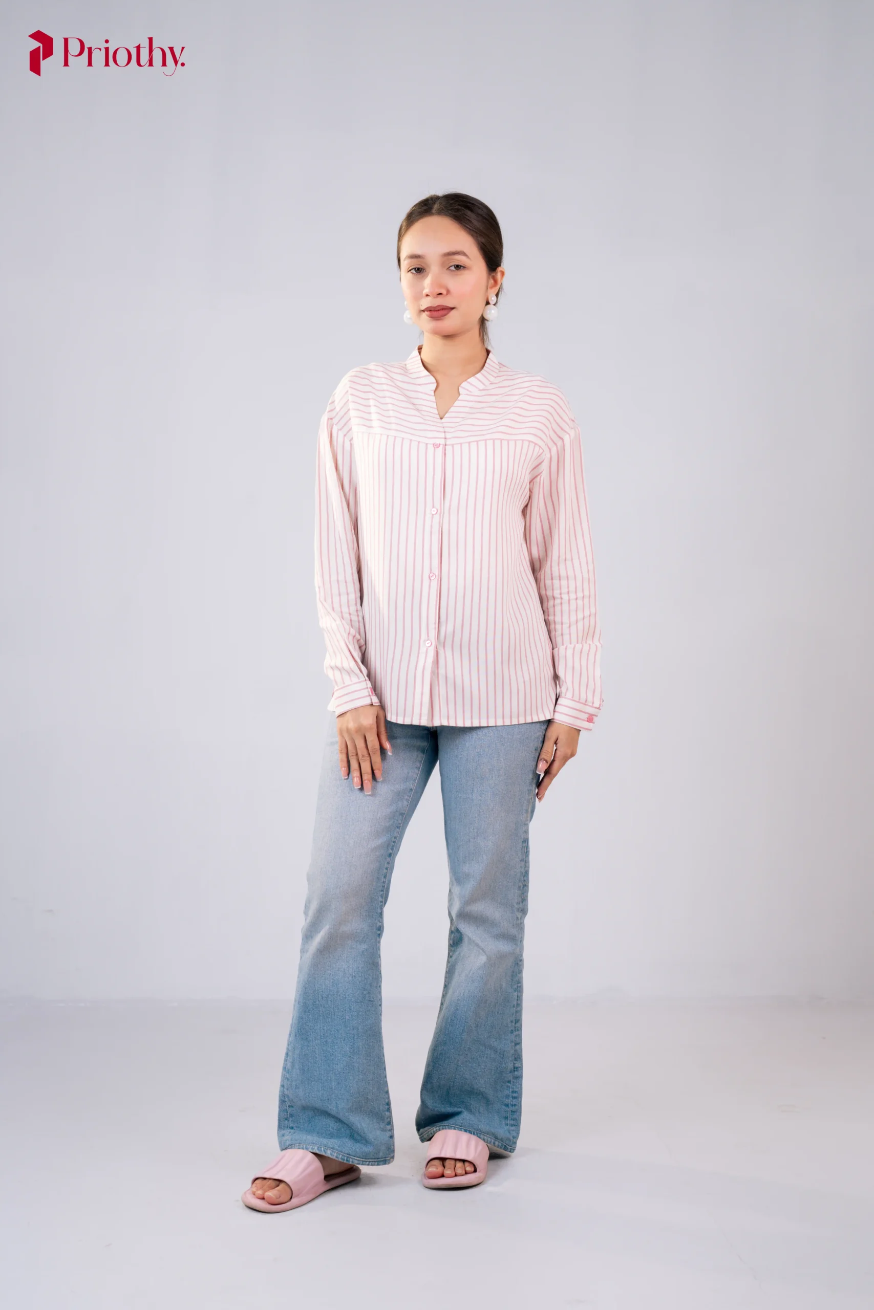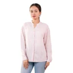 Perfect for office wear, university, casual outings, and smart-casual styling, this pastel pink striped shirt pairs effortlessly with jeans, trousers, or tailored pants.