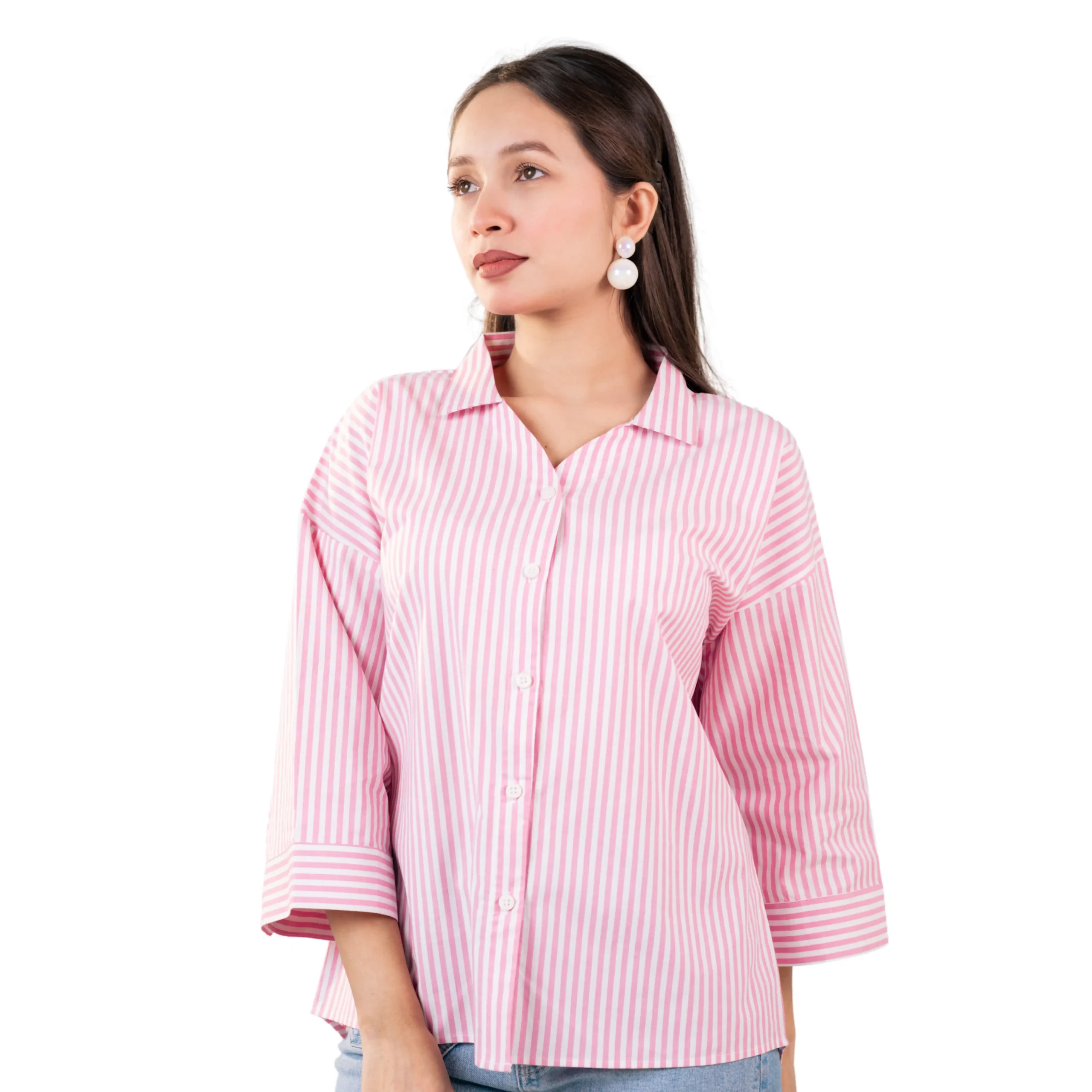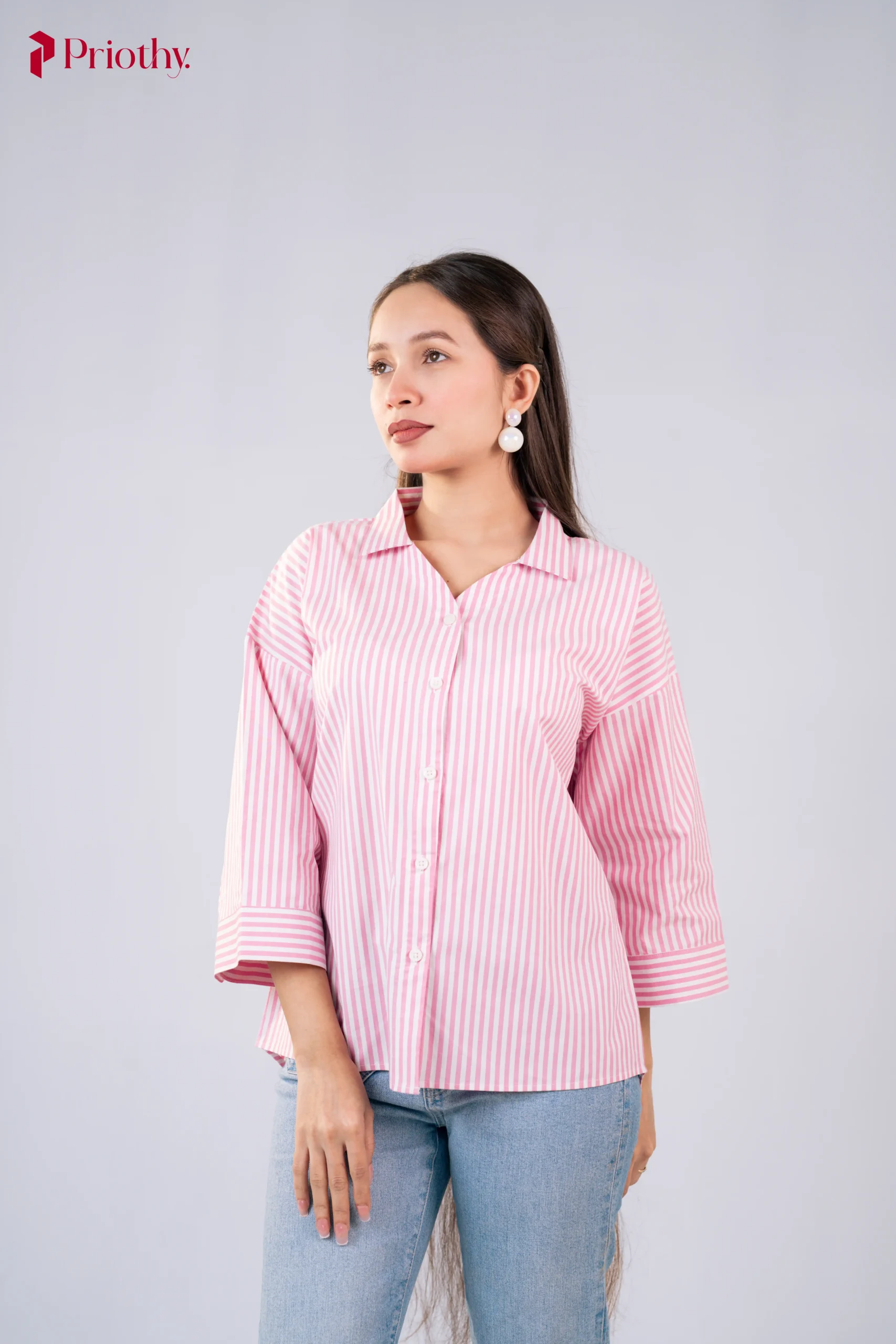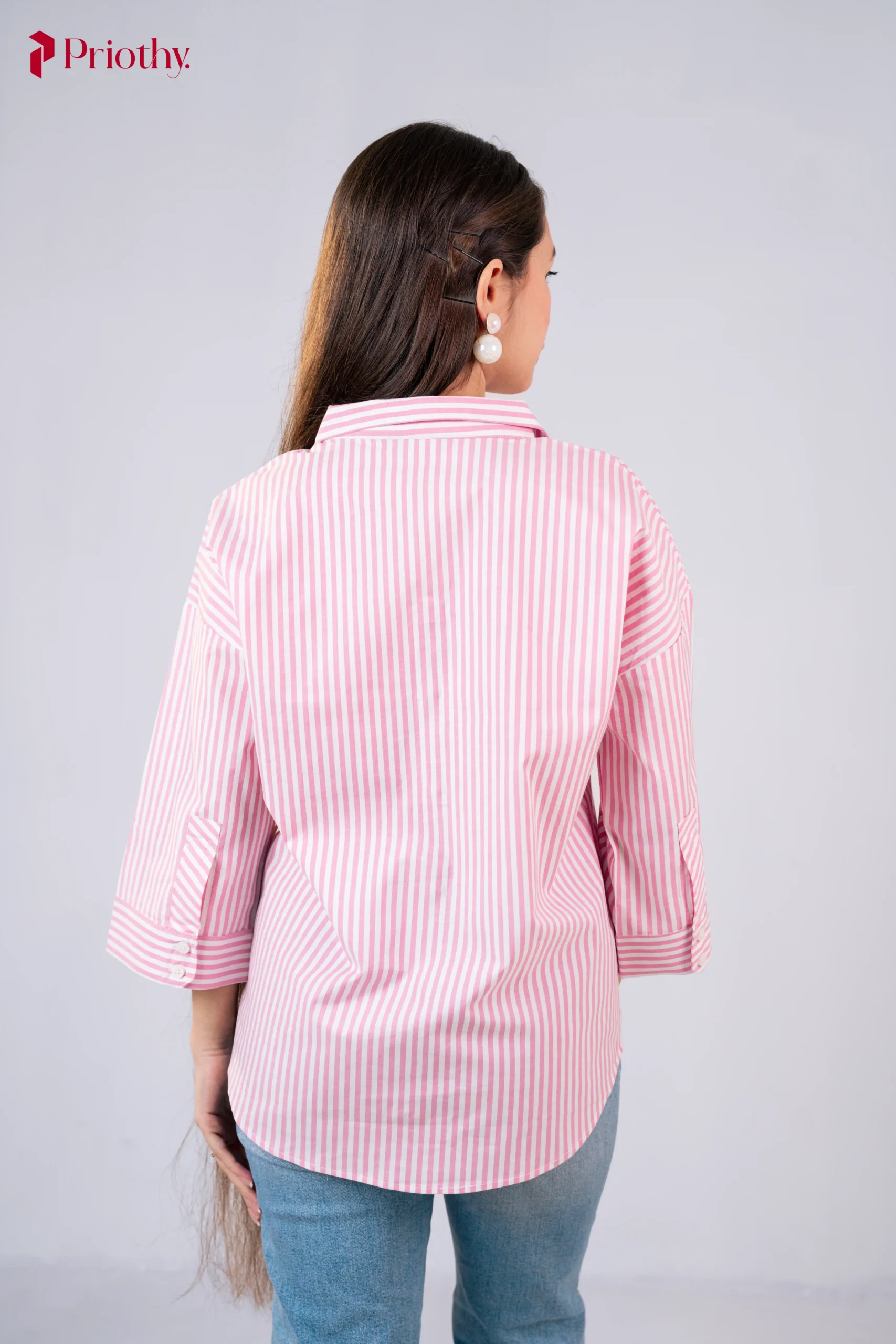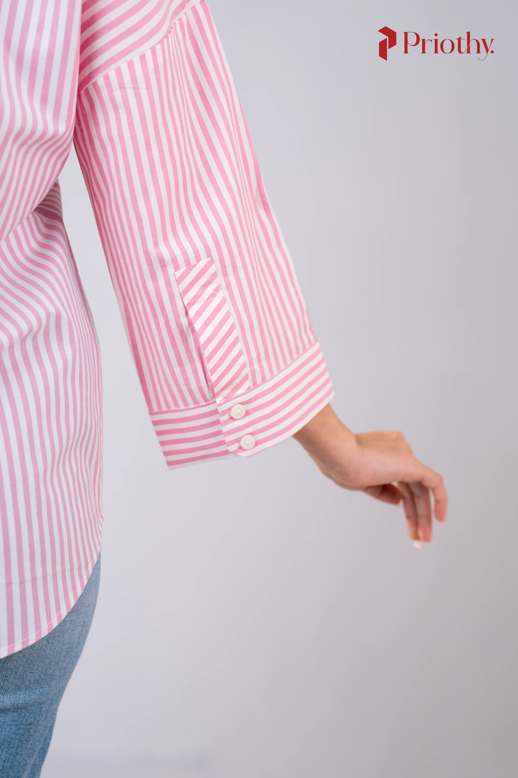 Soft Pink Striped Cotton Shirt – Relaxed Fit Casual Top