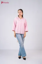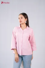 Add a fresh and feminine touch to your wardrobe with this elegant Soft Pink Shirt with White Stripes. Made from a premium woven cotton blend, this shirt offers breathable comfort, durability, and a soft feel for all-day wear.